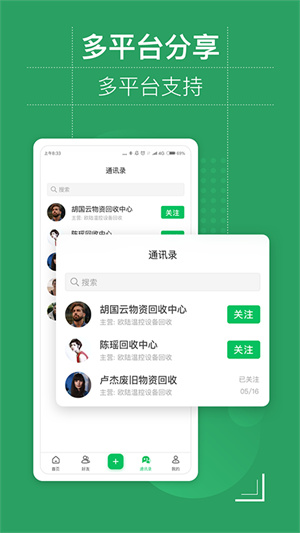1、一键关注各种通讯录好友,查看内容也比较简单和自由;