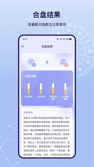 - 用户可以进行准确全面的星座测试,查看各个星座的详细信息和特性,从而加深对星座的了解。