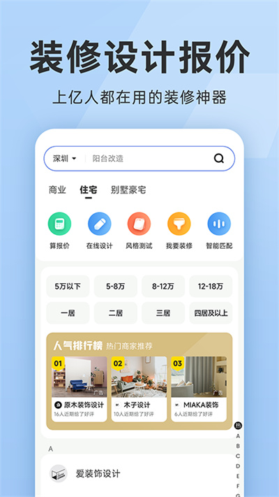 该应用如今深受大家的关注,因为装修本身就是一个非常值得大家关注的事情,我们平时面对装修上的资金使用上都非常在意,所以该应用如今在针对服务上可以看到有着超多的优质服务,帮助大家可以更好的选择。