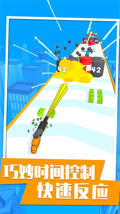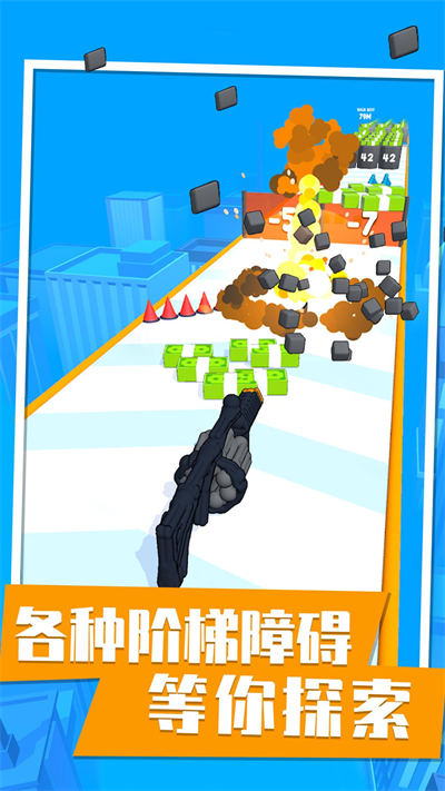-玩家在跑酷过程中还要不断收集子弹,这将能给到你很大帮助,可千万不要嫌多哦;