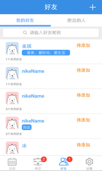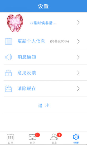 社交:每人都有自己的时间表,在日历和钟表上显示哪天哪个时间我有空,好友聊天聚 会谈事,时间一目了然!