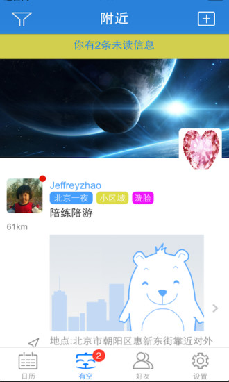 约会:将自己的碎片时间分享给好友,按照个人喜好与需求向有空帮的好友发布活动邀 请,告知好友我有空。