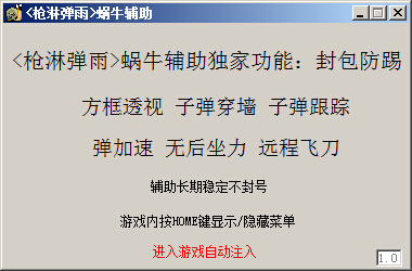 枪林弹雨蜗牛辅助是专为游戏《枪林弹雨》打造的辅助工具。软件功能强大,为玩家们提供方框透视、无后坐力、狙击自瞄等功能。相比其他的发枪林弹雨辅助,该辅助更稳当,而且不会被封号,赶快下载体验吧!
