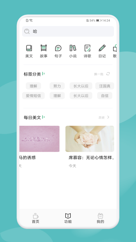 1、提供经典文章还有美文、句子、小说、故事等精选分类,还有很多经典语录等你来发现;