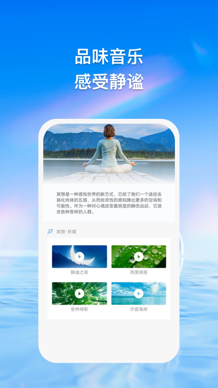 品乐app用冥想音乐帮助用户调节情绪、改善专注度,帮助大家静心冥想,放松自己的身体,放松自己的心情,释放掉心中的不好的情绪。