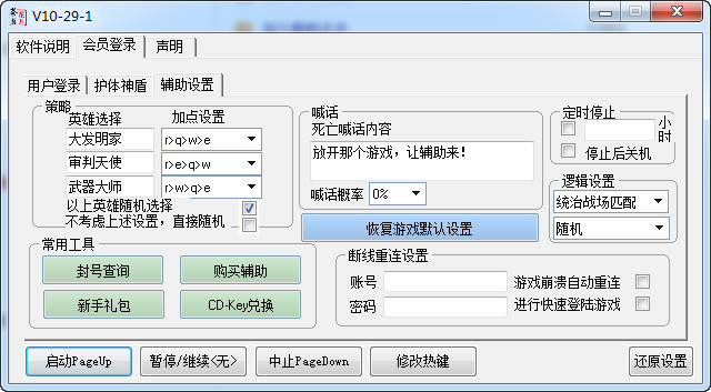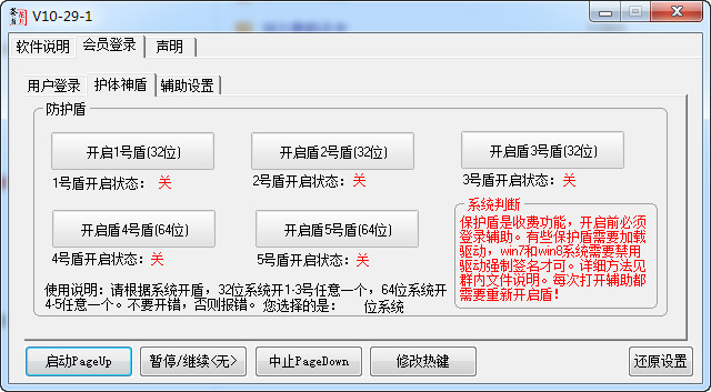 6.启动辅助前务必开好盾,没有开好盾不要挂机!