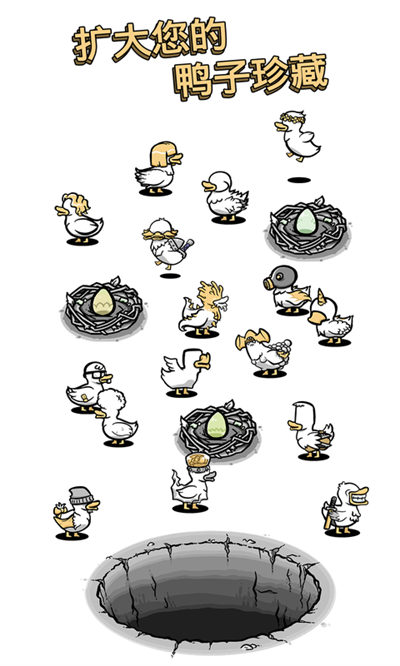 2、有趣的玩法,游戏中玩家可以在自己的养殖场内饲养鸭子,培育变异鸭子,还可以将鸭子放进神秘洞中,看看会发生什么不一样的事情;