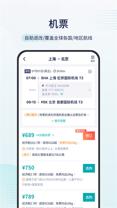 3、低价机票、打折机票、承诺付款100%出票,轻松实现低价出行,享受出差的时光。