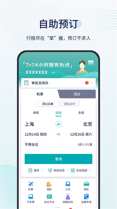 致行商旅app是一款非常专业的面向企业、单位等提供商务出行服务的软件,能够服务用户进行差旅自主预定,在出差时,自由的对要去的地方的机票、酒店、火车票等进行购买预定,功能非常强大,还能为用户提供各种公务租车、门票预订等服务,让每一个人能够轻松安排自己的差旅时光。