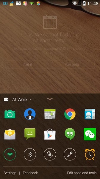 应用会根据时间、地点自动识别你在哪里,用户可以为这三种模式自定义壁纸。在每种模式下,快捷按钮部分显示的应用也不同。笔者对自动识别的准确程度感到惊讶(Big brother is watching you?)