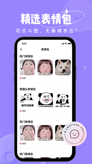- 这个软件在教你如何在线聊天方面很有用,所有搞笑表情都可以下载到手机或者转发。