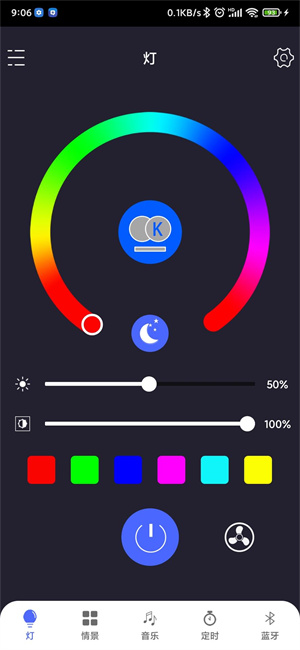 1、灯光:可用于控制灯光的颜色变化,并提供多种场景模式;