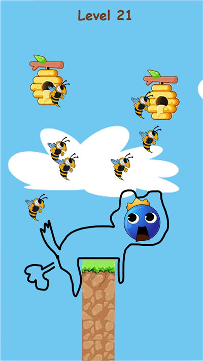 超多的游戏关卡,每一关的彩虹朋友和蜜蜂都在不同的位置,较难的关卡更是有陷阱来限制彩虹朋友,快来保护他,画一条合适的先,让他不再受伤。