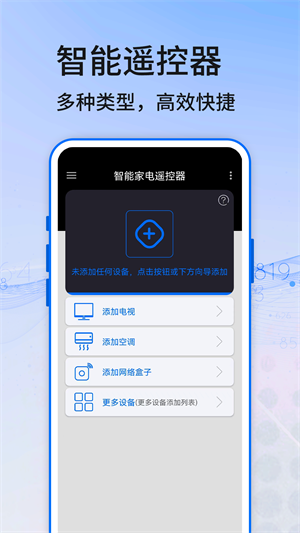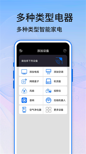- 再也不用担心家中的遥控器找不到了,用手机一键遥控多类型的设备。