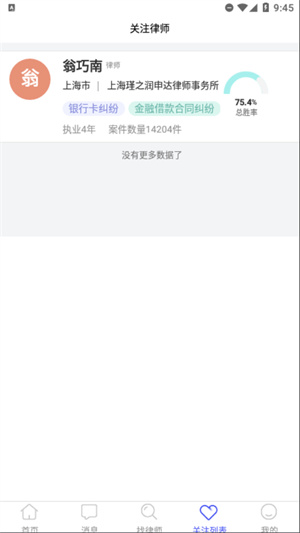 - 实时查询对应律师的胜率信息内容和相关律师诊所的信息内容,可以随时满足用户的需求。