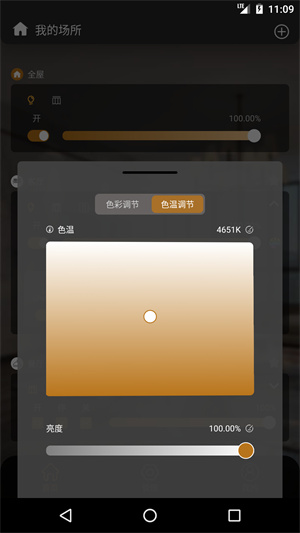 - 可以用手机对灯光的亮度、色温、色彩等进行调节,详细参数调节;