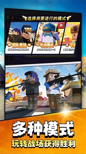 吃鸡大战场是一款像素风格的吃鸡手游,您可以使用精确的枪法来终结敌人,当然,你的终极目标是活到最后,这样你就有机会赢得最后的胜利,无论是主动攻击杀敌,还是一直躲在这里,你都可以用自己的方式去战斗完美,只要你能成功吃到最后的鸡肉。