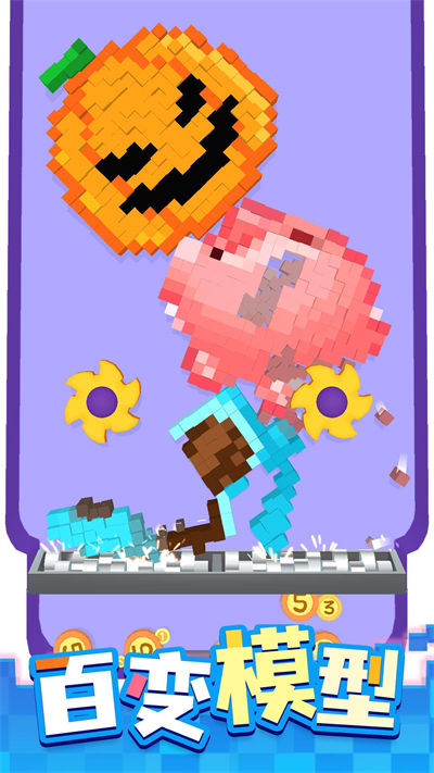 2、轻松解压的游戏模式,玩家需要控制道具拆除各种像素模型,像素模型被切碎会变成一粒粒像素,看起来非常解压;