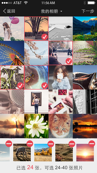 2.开始制作照片书,可选择至多40张照片进行编辑,每张图片可以配以文字说明;