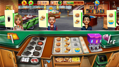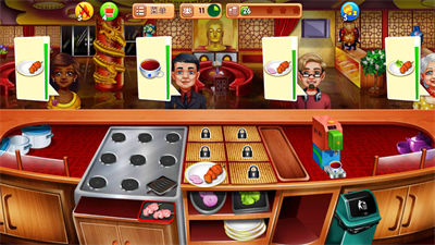 2、解锁食谱,玩家需要根据顾客的需求来给他们设计符合口味的菜品,解锁菜谱可以获得更多的菜品;