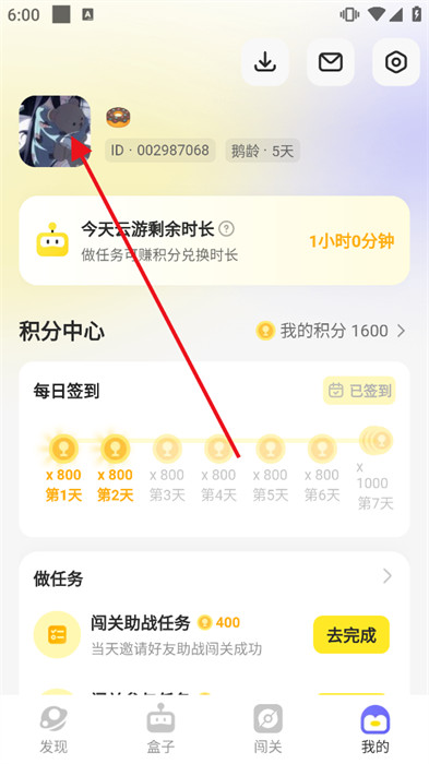 2、随后,点击最上方的账号头像,就会继续跳转页面,如下图所示;