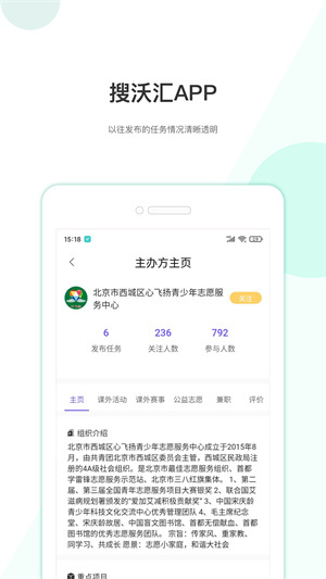 搜沃汇为学生的未来规划提供丰富的建议,它让我们发现生活中许多美好的东西,可以在平台内找到适合自己的社会实践活动,锻炼自己的同时为社会做出贡献,强化青少年的创新精神和实践能力,为学生提供全面发展的教育平台。
