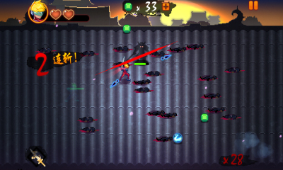 游戏在操作上的表现那简直就是惊天地泣鬼神啊,玩家只需要随意的点击屏幕就可以进行战斗,没错,只要随意就行。本作采用了全触屏点击的操作模式,玩家点哪里,这个小忍者就会向哪里瞬移过去,而途中的敌人都会被起无情的秒杀,这真是天下武功唯快不破。
