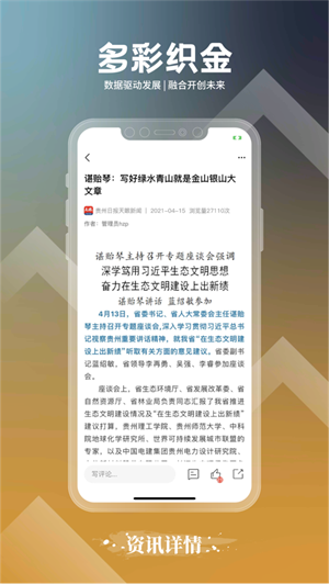 多彩织金致力于通过直播、视频、图形等视角,发现更多元的生活内容,还可以通过关键词快速搜索相应的新闻数据,平台提供的内容还是非常丰富的,每个人都可以在这里阅读个性化的新闻。