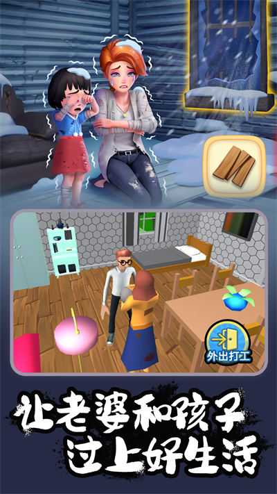 1、外出打工挣钱,游戏中的家居物品都需要使用道具来兑换或者购买,玩家需要经常外出打工,增加收入;