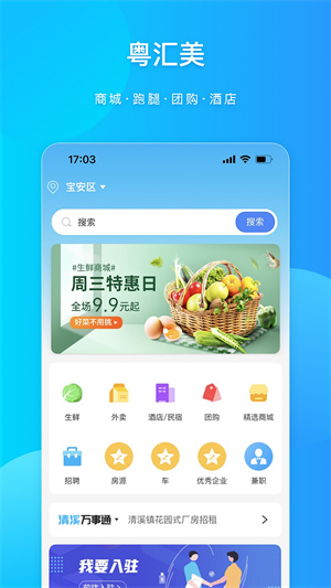 粤汇美是自带手机购物、招聘等操作的本地服务软件,手机购物超级方便,生鲜、水果等应有尽有,更适合广大用户使用很多精选的商品,还有很多服务等着你去满足日常使用的需求,给你带来非常贴心的1对1服务。