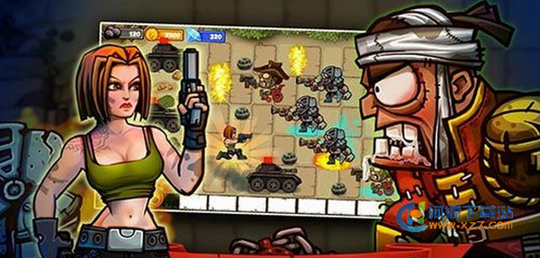 通过消除僵尸来收集黄金和战争物资,你可以训练士兵或者雇佣突击队英雄作为雇佣兵来帮助你。