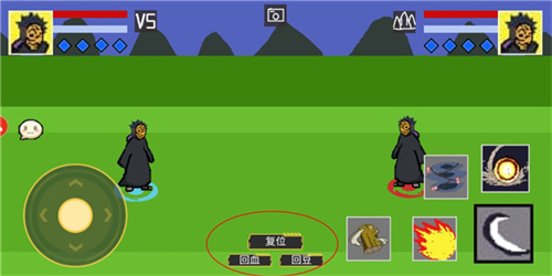 2.大家可以通过左边的按键去上下左右的控制角色进行移动,右边的各个不同的招式可以点击操作攻击对手;