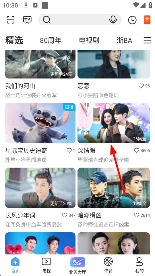 2、在首页中找到想要投屏观看的电视剧或视频内容并点击进入播放页面。