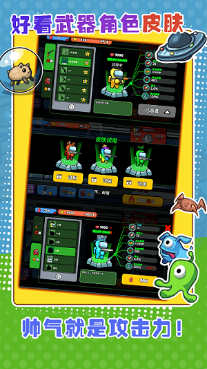 而游戏的主角就是我们最熟悉的太空冒名顶替者,游戏中,我们将选择不同的冒名顶替兵种与你在游戏中战斗,同时你将与其他在线玩家进行在线匹配,进行一场刺激的烧脑战斗,成功活到最后的玩家就是游戏的最终赢家,可以获得大量金币作为奖励,金币可以作为你装备更换的基本保障。