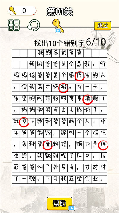3、简单的操作方式,玩家只需找出文章中的错别字并将其点击出来即可,非常的简单快捷。