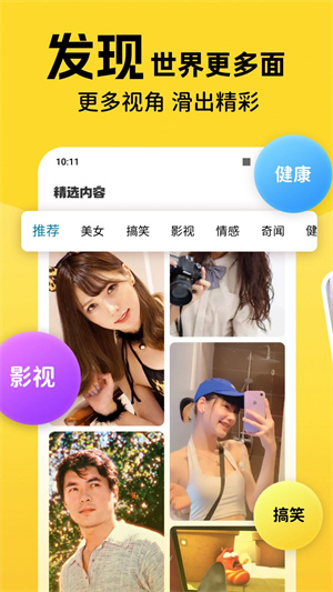 全民爱刷刷有很多热短视频不断更新,根据你的手机视频在线观看历史,为您提供最好的建议,这个软件也可以允许用户快速跟随你最喜欢的人才,你会得到在第一次观看短片作品。