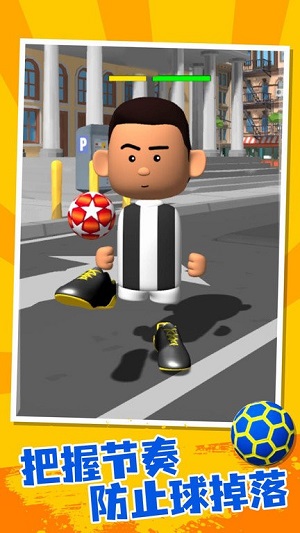 它是为喜欢踢足球的玩家创建的,你可以在游戏中控制角色完成各种高难度的足球动作,成功闯关,可以获得奖励,还可以更换不同的角色皮肤。