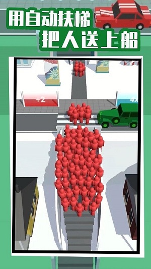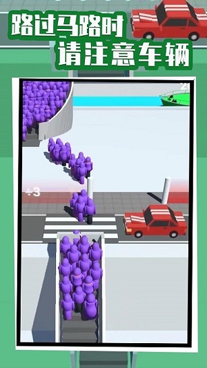 3、这里有很多交通道路,玩家需要带领小人通过,小心驾驶车辆并遵守一些交通规则,不要丢下任何人。