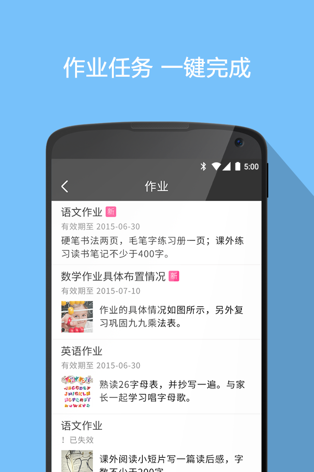 作业通知、投票、缴费、签到一键操作提交完成,方便快捷。