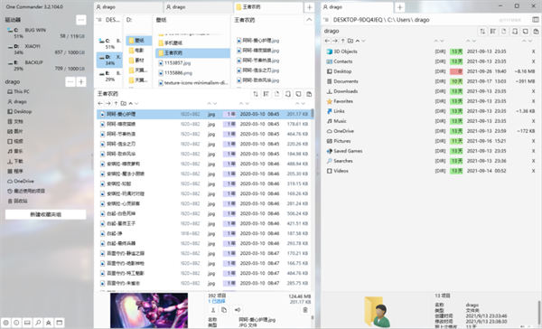 One Commander 3(多栏文件管理器)软件让用户的操作更加便捷,可以实现多任务文件窗口,这样就可以更加方便的来回操作,并且会有明显的窗口效果,让用户可以清楚的看到想要利用的文件夹,并且还有相关的衍生功能可以使用。