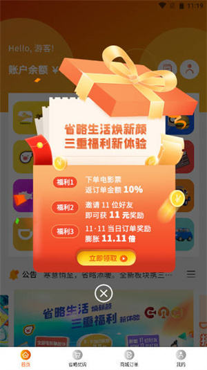省略生活满足不同用户的需求,带来更优质的服务,领完券下单还能再享受返利折扣,一键邀请好友加入省钱行列,好友下单即可获得返佣奖励,方便所有的用户都能轻松的共享人脉带来的社交新红利。