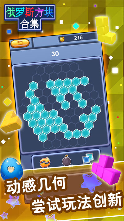 俄罗斯方块合集游戏是一款全新设计的消除类休闲游戏,这里不仅有经典的俄罗斯方块玩法,还有动感的几何模式、六角方块玩法等,玩家可以在这里体验不同的消除方式,挑战经典和全新两种不同的玩法。