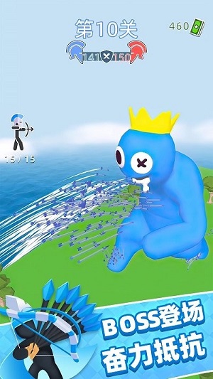 弓箭手io是一款有趣的射击游戏,游戏画面精美细腻,在游戏中,你要面对成群结队的陌生敌人,欢迎来到弓箭手的世界,使用武器组合打败敌人并赢得比赛,有兴趣的朋友赶紧加入游戏,可以不断强化你的队伍,快来打败蓝色怪,在游戏中,你可以攻破其他城市获得胜利,同时,您可以体验射箭的乐趣。