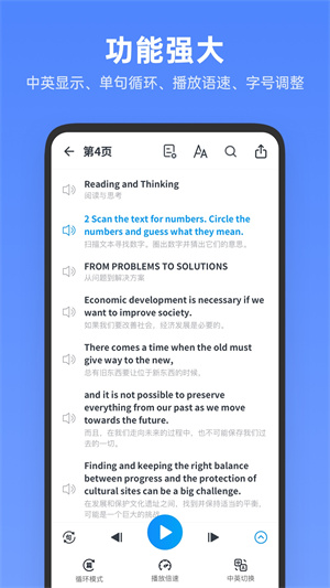 - 为用户提供了海量的学习资源,帮助用户掌握听、说、读、写四项基本英语技能;