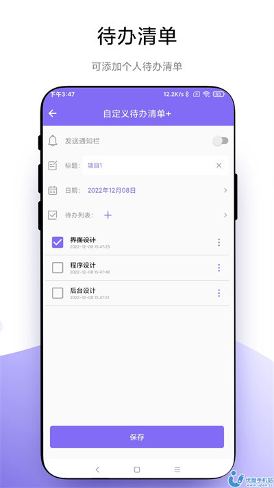 2、记性不是很好的朋友可以利用它来记录每天要做的事情,完成的就点击对勾记录;