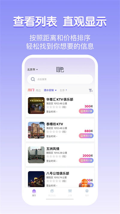 该应用功能如今可以给予大家更直观的列表查看,直观的显示KTV的距离位置和平均价格分析,按照距离和价格的排序方式可以更轻松的找寻你要的信息。
