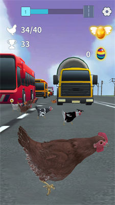 一款非常考验反应力的游戏 ,与其他小鸡们共同穿越这长长的马路,最终存活的家伙才能得到母鸡的青睐,游戏中有大量的干扰因素,来往的行人车辆,天上飞行的天敌,马路边草丛里隐藏着的毒蛇,你必须灵活走位躲避危险,直奔终点。