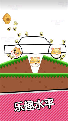 一款烧脑的闯关游戏,将狗头圈起来,或者将蜜蜂围起来,总之不要让蜜蜂扎到狗头即可顺利过关,充分利用地图上的场景去构建图案,你的线只能挡住蜜蜂其他的东西都是挡不住的,也不能阻止狗狗掉入岩浆,你需要把狗狗固定在一个方块上。