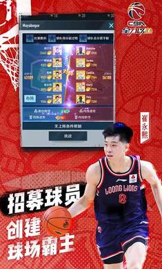 2、模拟球星数据:对CBA球员的数据一比一复刻,游戏中的球星均可以自由的招募,通过不断的训练,提升球员的能力。