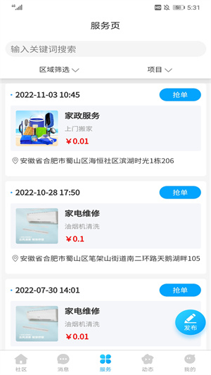 i松果社区是一款基于同城的社区服务平台,内置二手车交易群、家政服务群、家电维修群、求职群、优惠购物群等,实时消息通知,服务项目和服务,你可以在区域内观看,还可以在发布平台上发布任务,如维护、清洁、清洁等任务。